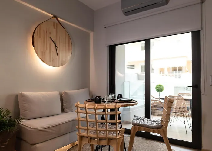 ハニアの中心部まで徒歩15分で、ネア コオラ ビーチからたった0.6kmです。 32m²のアパートは2,000 Years Old Treeすぐ近くの場所にあります。 市立庭園から車で10分くらいの距離にあります。